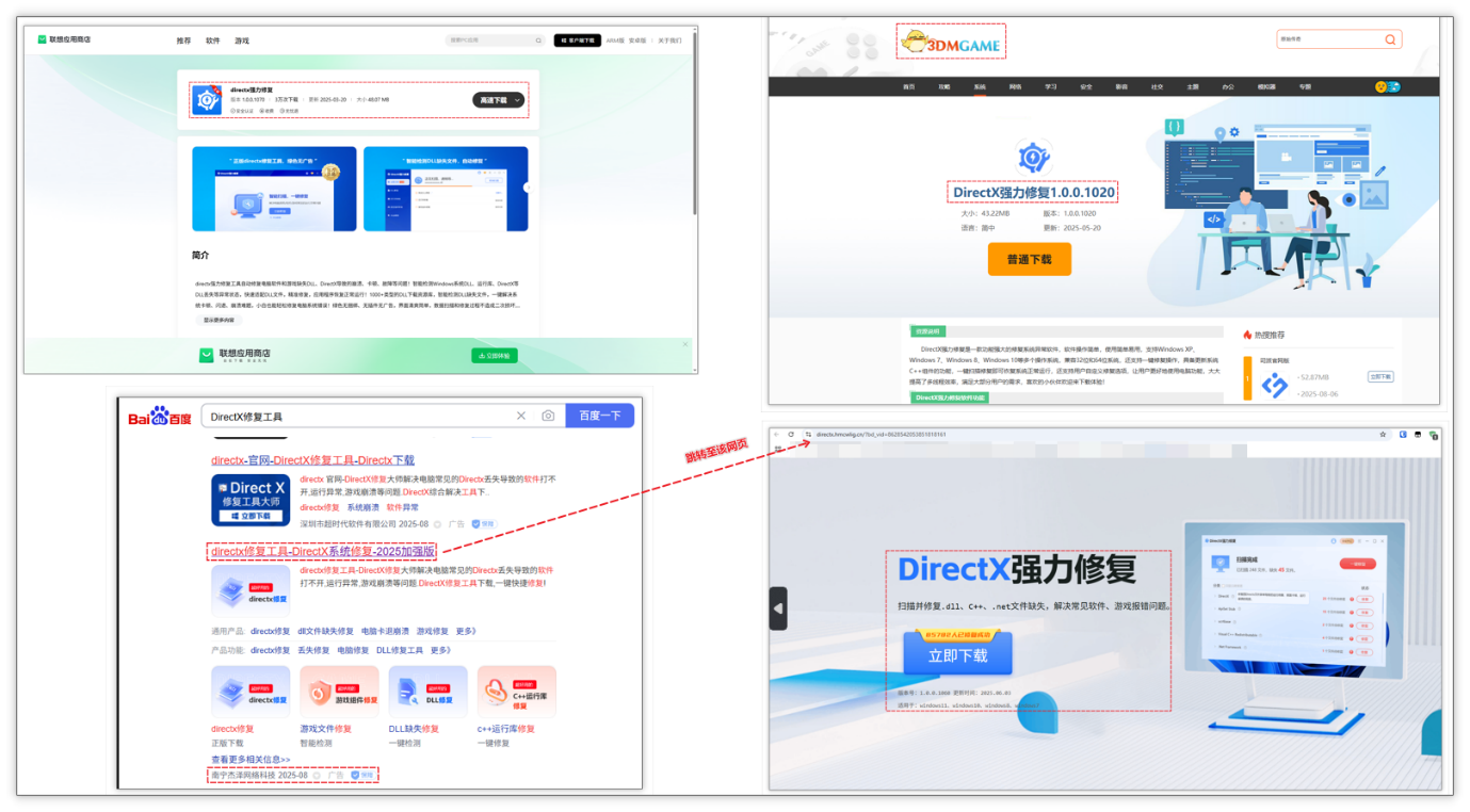 市面上可以下载该软件主要通过三个渠道,分别为联想商店、3DM 以及百度竞价推广。