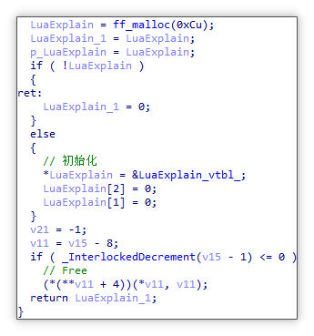 Lua 脚本执行:随后开始执行 Lua 脚本,其中 Lua 脚本执行是通过调用 bapi.dll 导出函数 GetBasicObj,随即获取到 Lua 解释器对象,并利用对象中解释器函数进行解释执行。