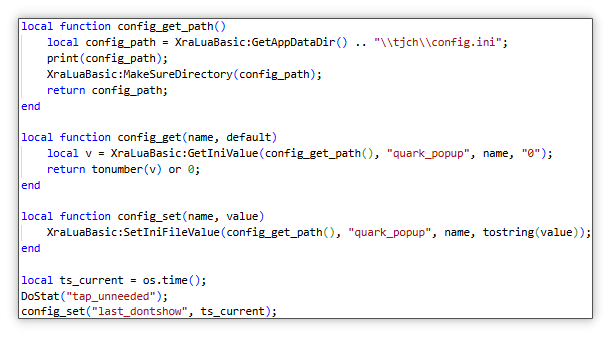 Lua 脚本弹窗:随后开始执行 Lua 脚本,该系列脚本都是静默安装后通过弹窗 30 秒(或任意秒)让用户交互一下,其中只有当用户在 30 秒或任意时间内点击“我不需要”(btn_dontshow) 时才会删除静默安装的内容。