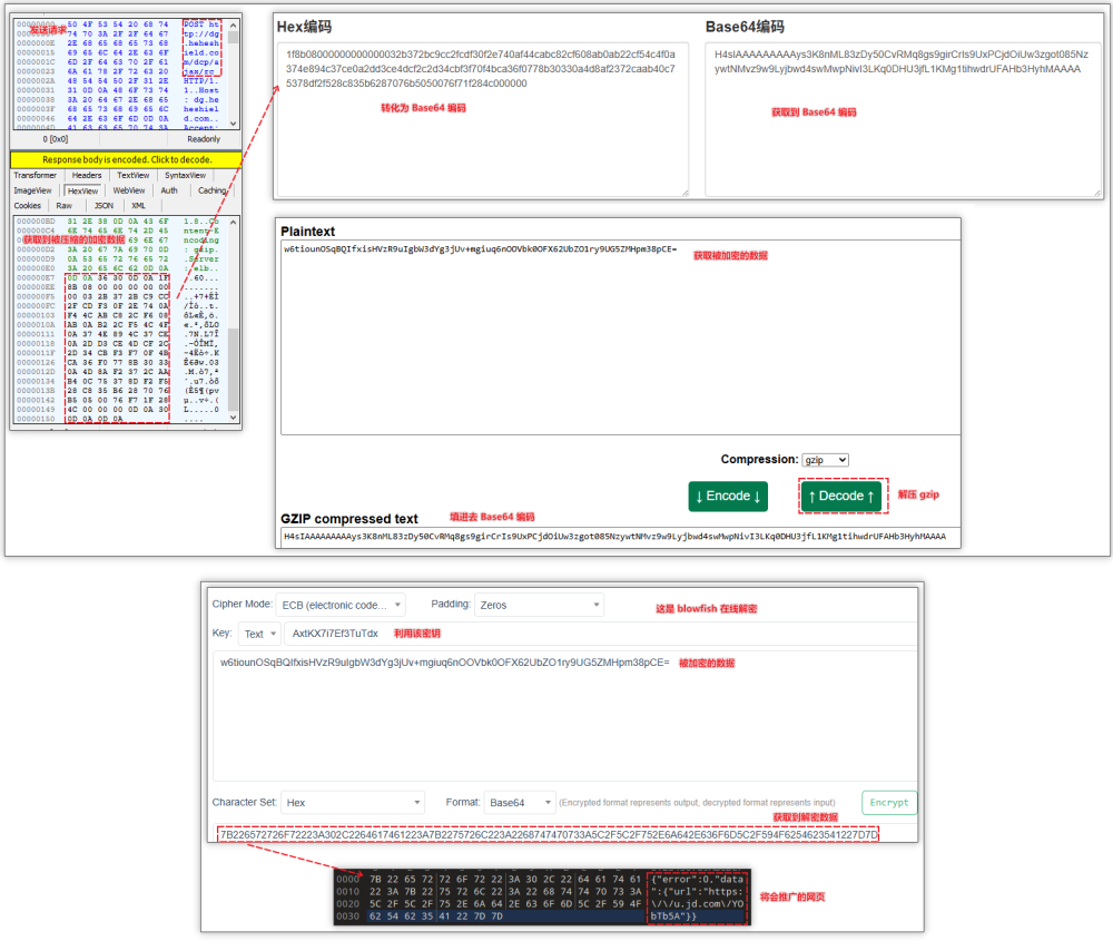 通过各类工具解密被加密的推广网页,获取原始数据。