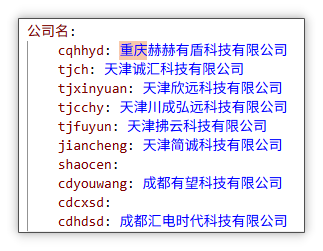 随后分析过程中搜索其中进程名时意外搜索到编译这些软件包的CCNet服务器日志,其中包含多个软件包,例如 BlueDove、DustAway 等,还有多个编译选项,其中不乏 cqhhyd、tjch、tjxinyuan 等,火绒工程师通过分析多个公司之间的联系时获取到了一些信息,通过这些信息推测出了多个名称的含义。