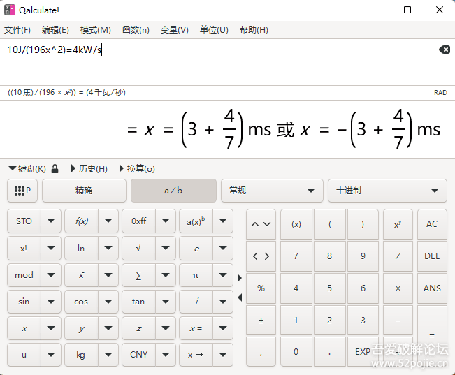 Qalculate!(计算器软件)是一款跨平台、全免费的计算器应用,外观简单易用,内核强大,功能丰富,适合各种用户进行复杂的数学计算和分析。